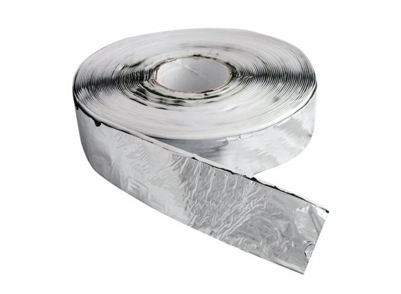 Самоклеящаяся пароизоляционная, теплоотражающая бутилкаучуковая лента, дублирована с одной стороны металлизированной пленкой.